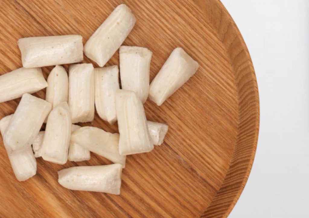 秋田県男鹿市で無農薬栽培された菊芋を加工した無添加飴です。原料は水飴、グラニュー糖、菊芋。サクサクとした噛みごたえのある食感が特徴です。